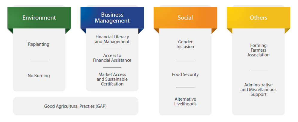 Selain itu, perusahaan menyediakan skema alokasi lahan terlantar di perkebunan bagi para petani untuk membudidayakan buah-buahan dan sayur-sayuran, yang dapat dimanfaatkan sebagai makanan pelengkap. Inisiatif ini dilaksanakan untuk mengatasi masalah gizi buruk dan kekurangan vitamin. Para petani didorong untuk menanam sayur-sayuran dan buah-buahan dengan masa tanam yang lebih pendek di pekarangan rumah dan kebun mereka untuk memberikan hasil yang lebih teratur dan menyeimbangkan kebiasaan diet khas kebanyakan orang Indonesia.