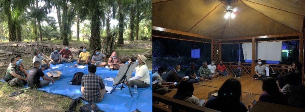 The duration and delivery may differ for different groups as the program is always tailored to suit the knowledge of the participating farmers, and the conditions in each regency. This is necessary as conditions in Sumatra can be vastly different from that of Kalimantan, among other factors.  The program is administered on a village-wide level, in a mixture of classroom and field sessions. Classroom lessons are delivered in a village meeting hall, known locally as a Balai Desa, or sometimes in the farms of the smallholders.
