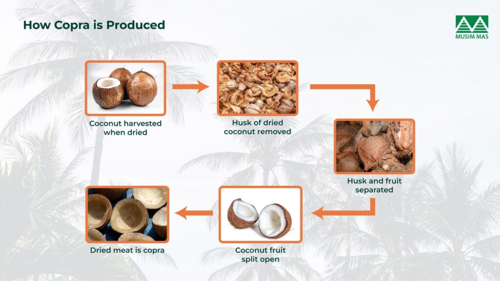 Selain menjadi perusahaan minyak kelapa sawit yang terintegrasi, Musim Mas juga memproduksi minyak kelapa dan turunannya yang dapat digunakan dalam berbagai aplikasi makanan dan industri. Minyak kelapa diekstraksi dari kopra, yaitu daging kelapa putih yang dikeringkan. Semua kopra yang diperoleh Musim Mas berasal dari petani swadaya. Bagaimanakah cara Musim Mas memasok kopra dan mengolahnya menjadi minyak kelapa dan turunannya, seperti surfaktan berbahan dasar kelapa yang digunakan dalam sampo yang kita temukan di rak supermarket?
