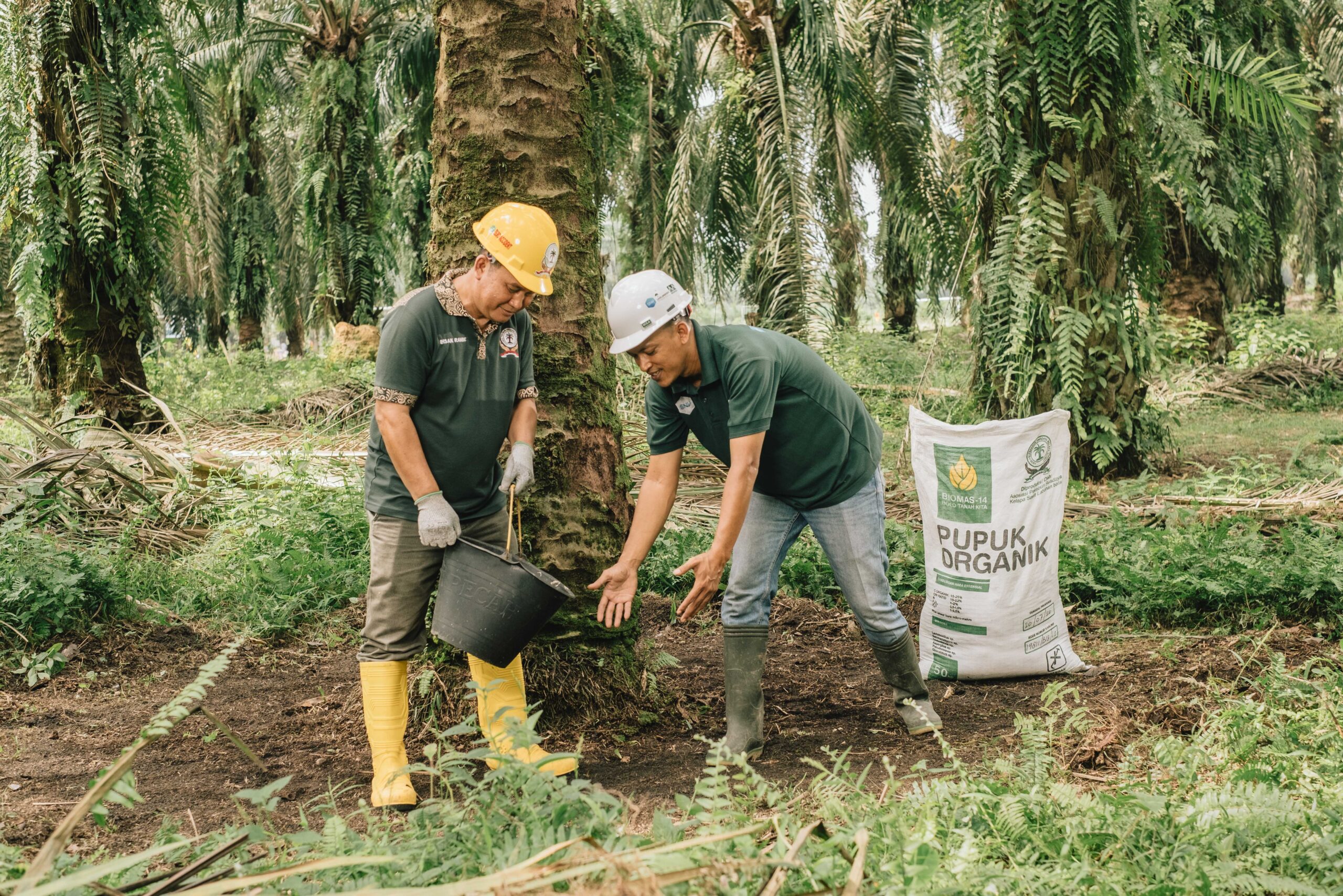4. Bio-input: Trichoderma, bio-fungisida, diaplikasikan untuk memerangi dan mencegah penyakit akar yang disebabkan oleh jamur Ganoderma, penyakit umum pada tanaman sawit yang menyebabkan kematian tanaman, dan saat ini belum ada obatnya.