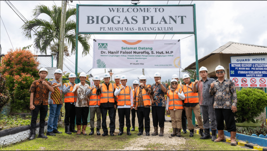 Menteri Lingkungan Hidup sekaligus Kepala Badan Pengendalian Lingkungan Hidup (BPLH), Hanif Faisol, beserta jajarannya, ditemani oleh Manajemen PT Musim Mas saat mengunjungi fasilitas Methane Capture PT Musim Mas yang berlokasi di Sorek, Riau.