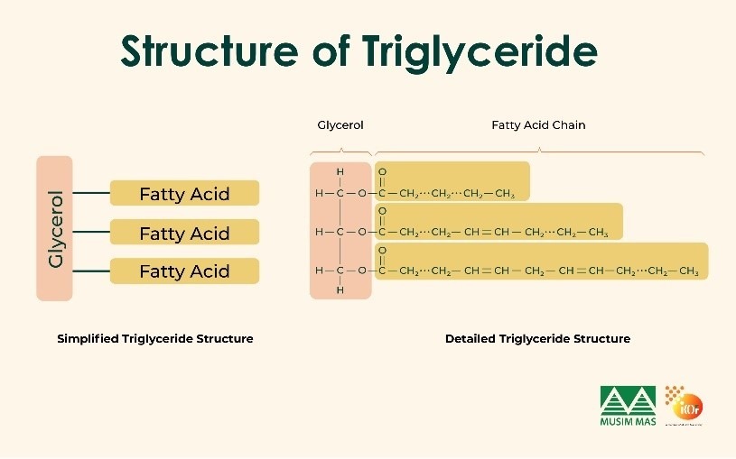 At the molecular level, specialty fats are made up of triglycerides, molecules composed of a glycerol backbone and three fatty acid chains.