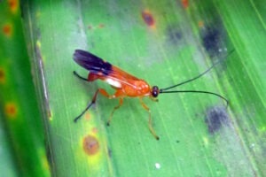 Meanwhile, parasitoids use a sneakier method. These tiny parasitic wasps lay their eggs on or inside caterpillars. When the eggs hatch, the larvae feed on the caterpillars, either from the outsideor from within. Parasitoids are harmless to humans. Some helpful ones include Ichneumonids like Spinaria spinator and Goryphus spp., and Braconids like Aulosaphes pyschidivorus and Dolichogenidea metesae.