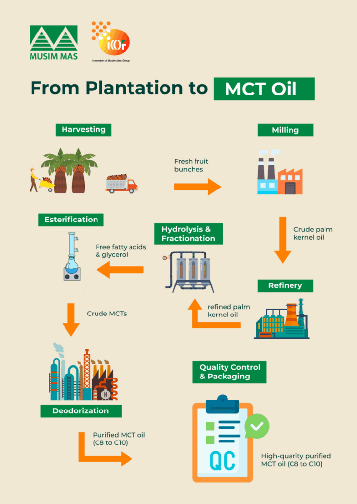 What is MCT Oil? | Substitutes for MCT Oil | How Are MCTs Different from Other Fats? | How is MCT Oil Made? | Palm Kernel MCT Oil vs. Coconut MCT Oil: What’s the Difference? | Uses and Benefits of MCT Oil | Musim Mas’ MCT Oil Range | Sustainability You Can Trust