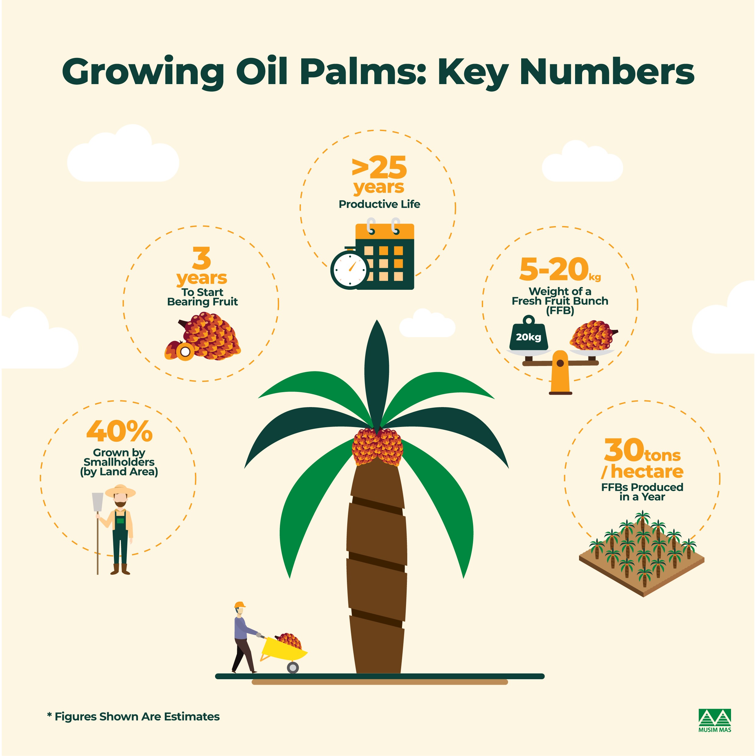 The plants continue to be productive even after 25 years. However, they’re generally replanted after 25 years because the palms would have grown too tall by then. If the FFBs are too high up the palm, it becomes more challenging for farmers to harvest them.