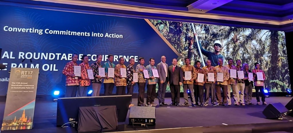 Bangkok – Earlier this week, independent Smallholders from IFC-Musim Mas’ smallholder programme received certificates from the Roundtable on Sustainable Palm Oil (RSPO) during the launch of RSPO Smallholder Academy at RT17, an annual meeting. Being RSPO certified represents a significant milestone in the Smallholders ’ journey towards producing oil palm sustainably as it increases their market access and income.