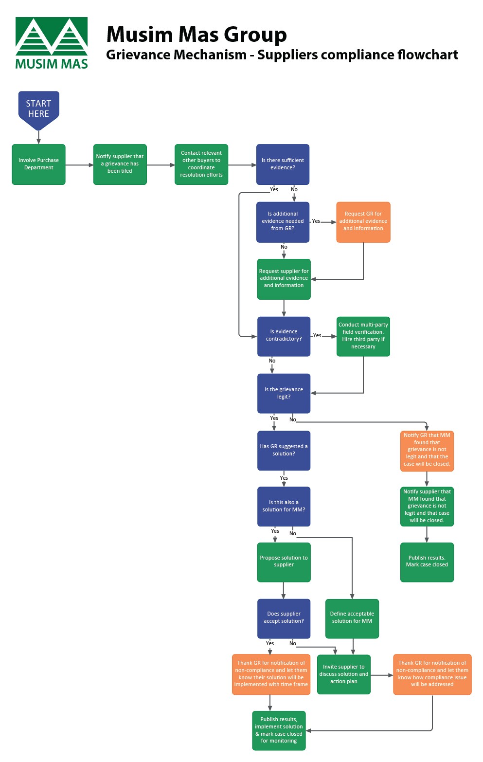 This mechanism, shown below, provides a generic outline of our process for receiving, verifying and addressing all grievances raised against us or our suppliers.